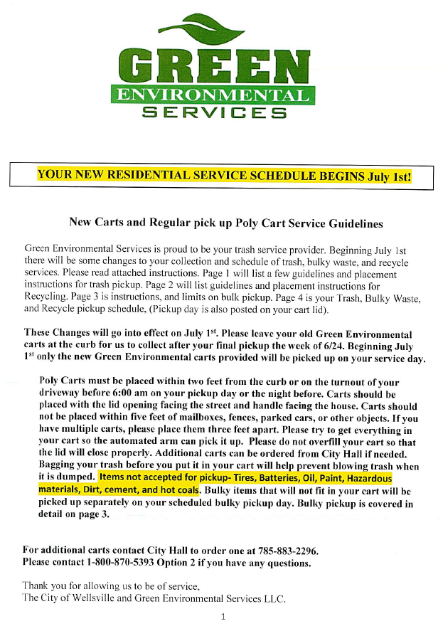 Please make sure to set your trash out by 6:00 A.M. on your trash day’s to ensure pickup.